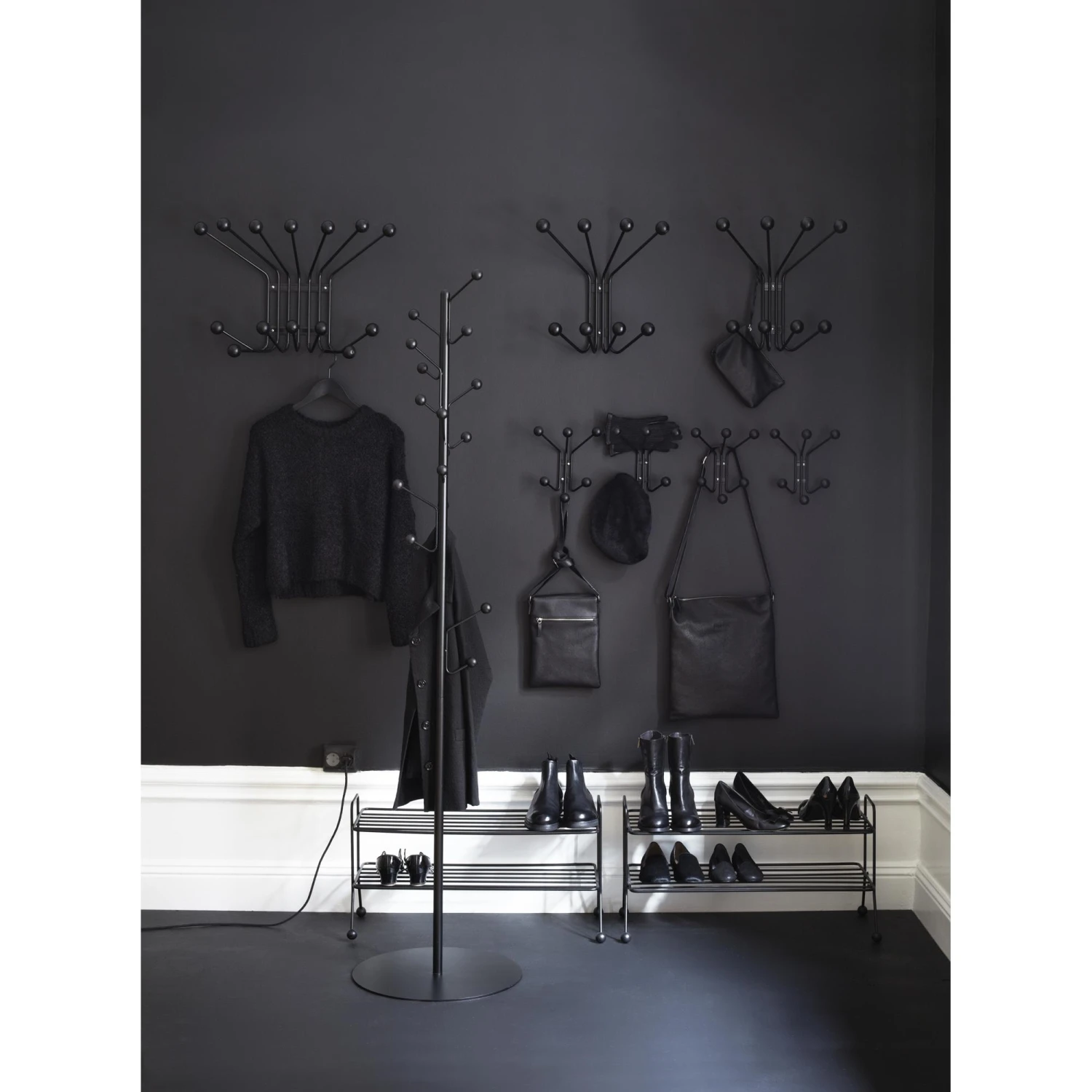 Concept: The Bill series designed by Lousie Hederström is an elegant collection consisting of a number of different elements for the home. Among other things, you will find hat shelves, clothes racks and several different coat racks. All products in the Bill series have the same minimalist design, which is based on a frame in powder-coated steel, as well as details in wood. Use the different parts together and create a nice and elegant connection in the home.