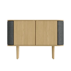 Designer: Tomas Bentz For Muuto Concept: The Enfold sideboard is a stylish piece of furniture with a unique push-open system that lifts the pleated doors. The sliding steel doors are powder-coated in either graphite or black, while the bottom and top are available mixed in solid oak, among other things. The extremely light quality of this sideboard creates a look that is modern and contemporary elegant. It complements both home and office beautifully, and it can easily find its place in living rooms, kitchens and even in hallways.