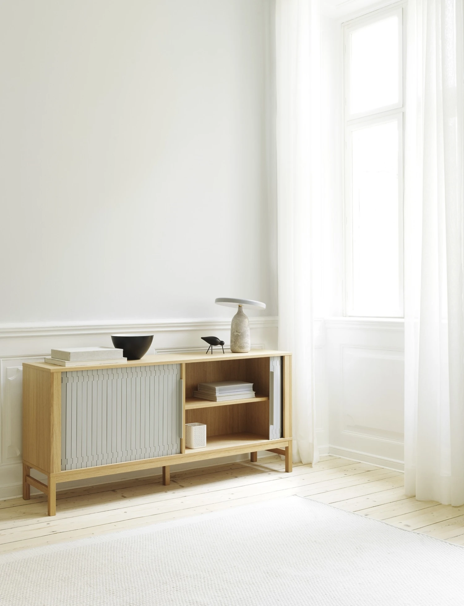 Design: Simon Legald for Normann Copenhagen Concept: This modern sideboard is the perfect example of a Scandinavian design classic. Simon Legald was inspired by wristwatches, conveyor belts and 50s furniture for his Jalousi series, resulting in an elegant sideboard with adjustable shelves. The Normann Copenhagen Jalousi sideboard will fit perfectly in both traditional and modern interiors.
